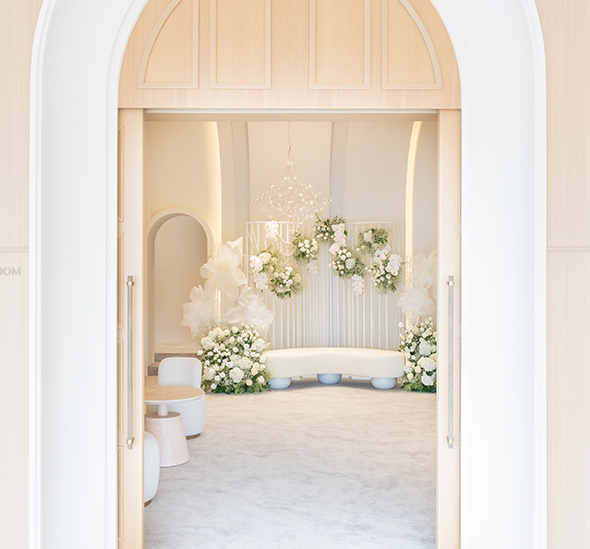 Bride Room 한 송이의 꽃처럼 가장 아름다운 순간, 신부의 미소가 머무는 공간 세련된 인테리어와 부드러운 조명, 커스텀 플라워 그리고 편안한 분위기 속에서 그날의 설렘이 가장 찬란하게 피어납니다.